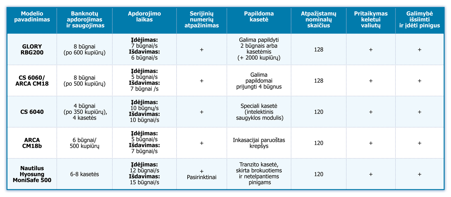 • Neįmanoma išsiimti saugomų kupiūrų pagal tam tikrus jų požymius (pvz., nominalą, serijinį numerį).