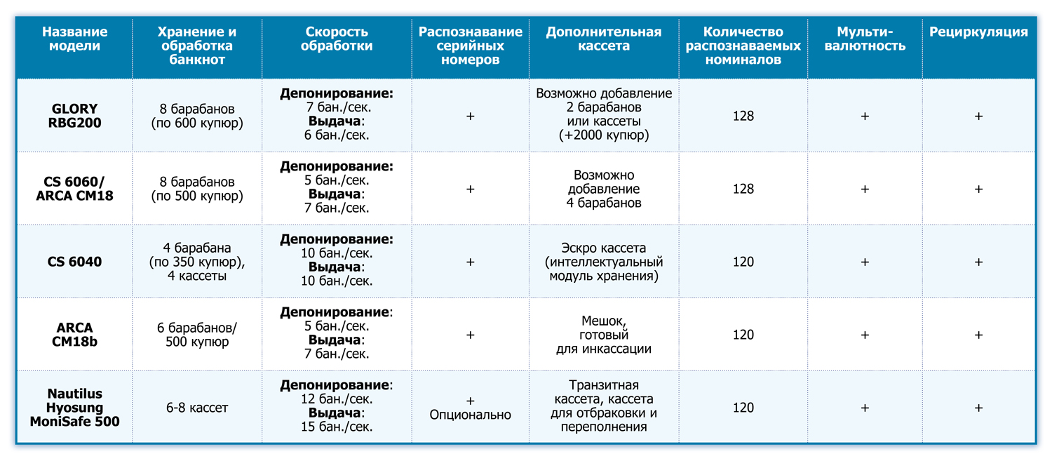 - Большая общая емкость – до 11 000 банкнот